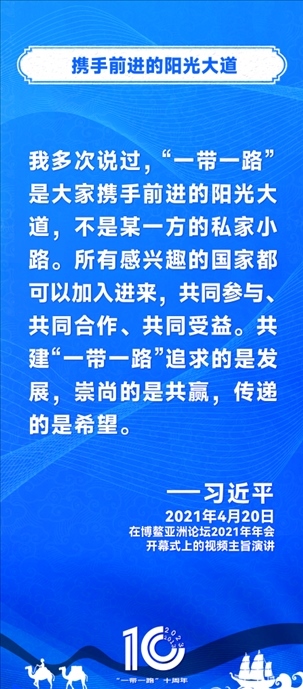 10年前,習(xí)近平主席提出共建“絲綢之路經(jīng)濟(jì)帶”和“21世紀(jì)海上絲綢之路”,即共建“一帶一路”倡議。過去10年來,習(xí)近平主席在多個(gè)場合發(fā)表講話和署名文章,為世界描繪了共建“一帶一路”互聯(lián)互通、合作共贏的宏偉藍(lán)圖。