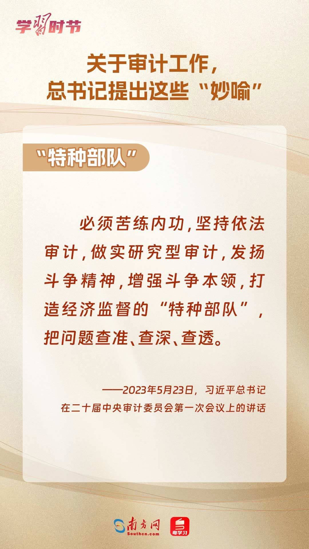 11月1日出版的《求是》雜志刊登了習(xí)近平總書記在二十屆中央審計(jì)委員會(huì)第一次會(huì)議上的講話全文??倳浽谥匾v話中“妙喻”審計(jì)工作,讓我們一同學(xué)習(xí)。