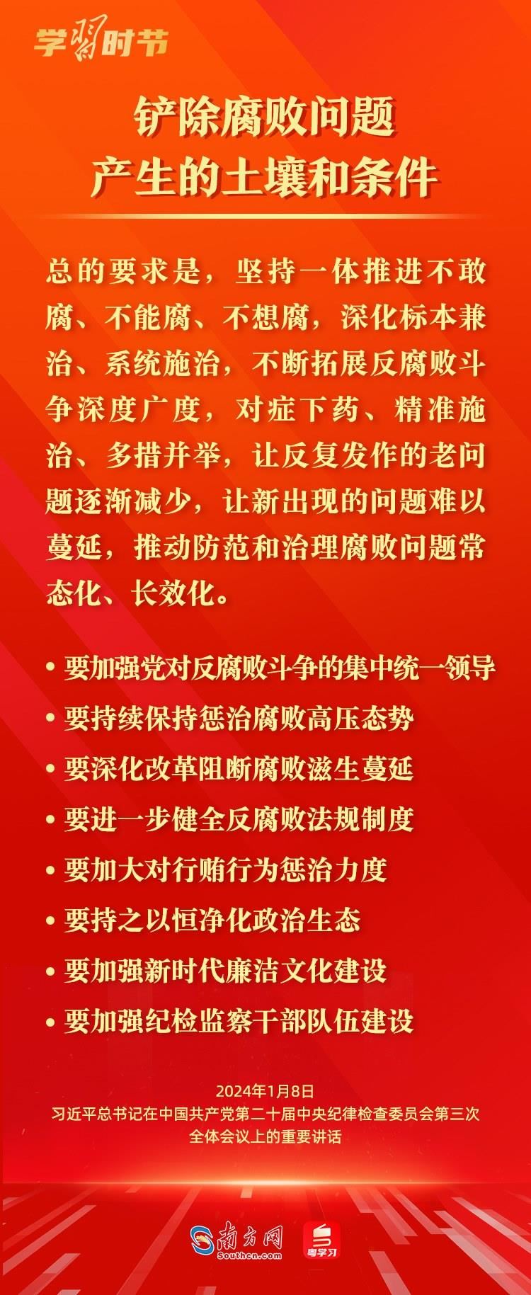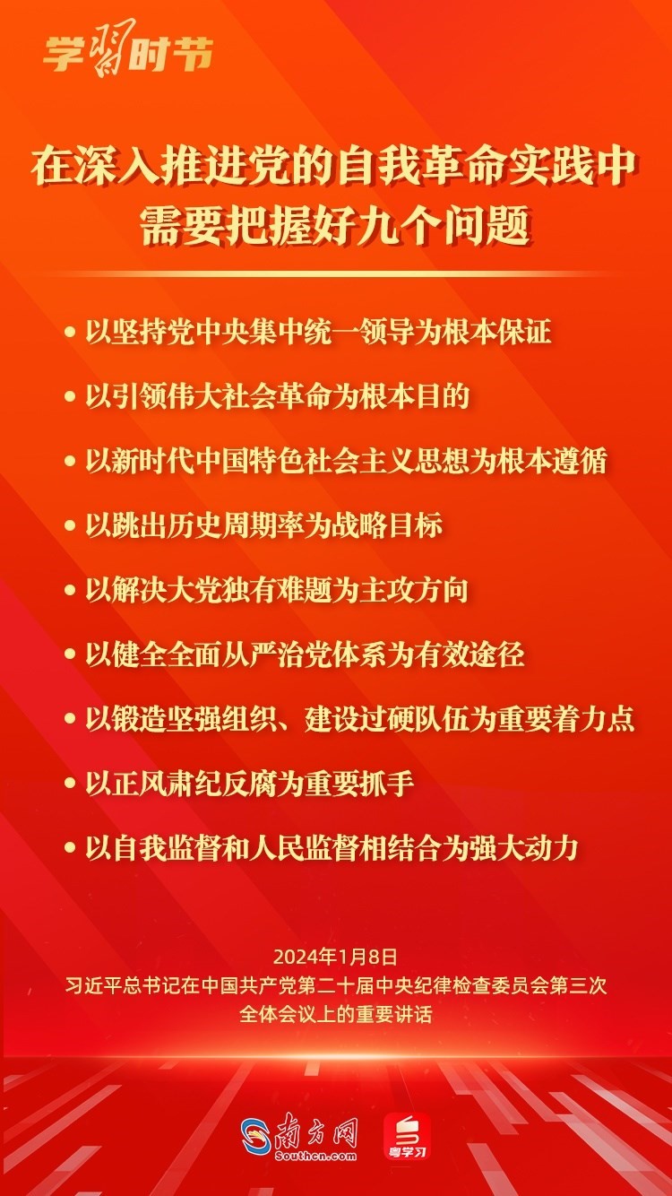 1月8日,中共中央總書記、國(guó)家主席、中央軍委主席習(xí)近平在中國(guó)共產(chǎn)黨第二十屆中央紀(jì)律檢查委員會(huì)第三次全體會(huì)議上發(fā)表重要講話,深刻闡述黨的自我革命的重要思想,對(duì)持續(xù)發(fā)力、縱深推進(jìn)反腐敗斗爭(zhēng)作出戰(zhàn)略部署。