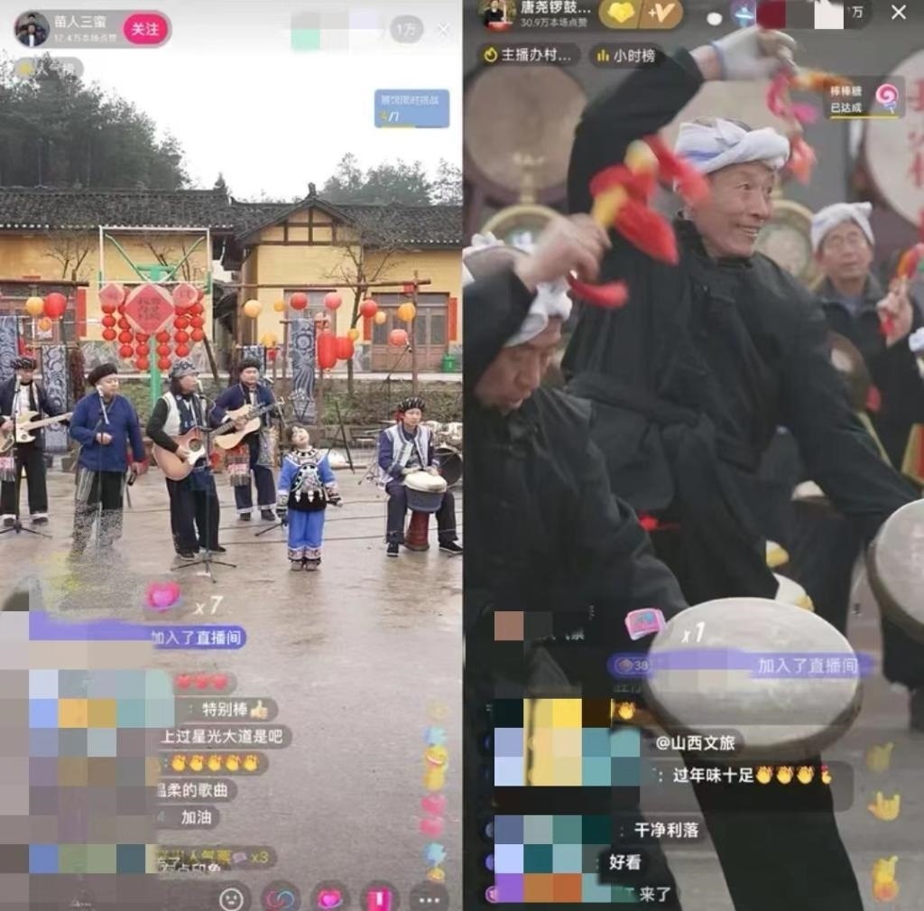 湖南省鳳凰縣臘爾山鎮(zhèn)苗寨中,4個(gè)“90后”苗族小伙組成樂(lè)隊(duì)自辦“村晚”,規(guī)模不大,唱火家鄉(xiāng);山西臨汾的村民們用簸箕、黃豆當(dāng)樂(lè)器,配合嗩吶和非遺晉南威風(fēng)鑼鼓,直播連線上千公里外的苗鄉(xiāng),南北大聯(lián)歡釋放獨(dú)特的精彩,吸引在線觀眾近800萬(wàn)人……