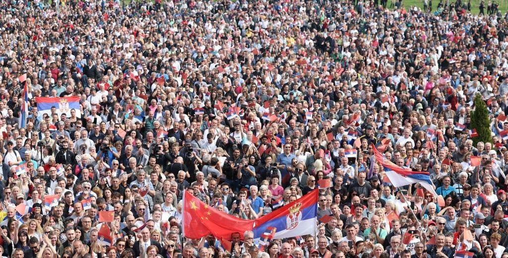 大廈廣場(chǎng)上,一萬(wàn)五千名塞爾維亞民眾揮舞中塞兩國(guó)國(guó)旗,對(duì)習(xí)近平表示最熱烈的歡迎。