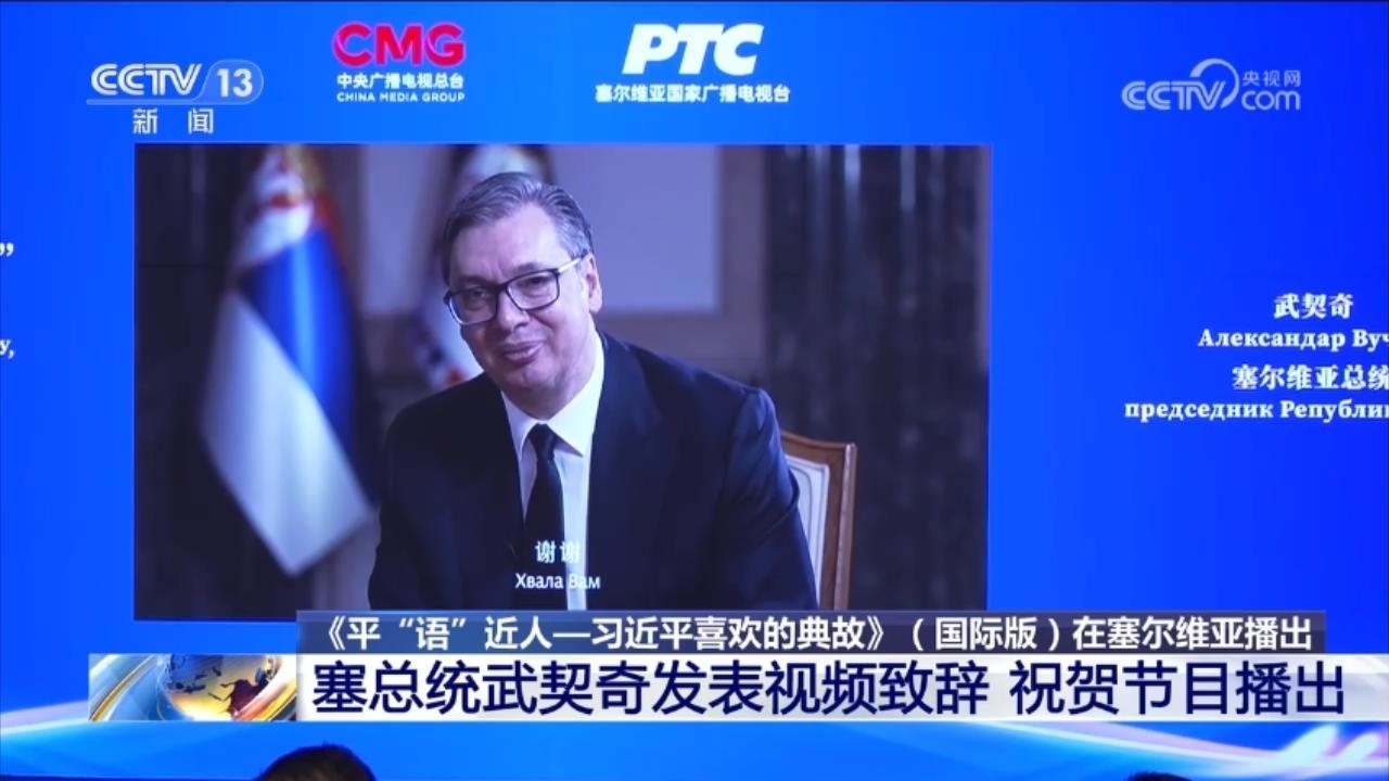 央視網(wǎng)消息:在中國國家主席習(xí)近平對塞爾維亞進(jìn)行國事訪問之際,當(dāng)?shù)貢r間5月7日,由中國中央廣播電視總臺制作的《平“語”近人——習(xí)近平喜歡的典故》(國際版)在貝爾格萊德上線播出。塞爾維亞總統(tǒng)武契奇向活動視頻致辭,祝賀節(jié)目在塞爾維亞播出。