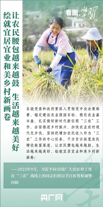 民族要復(fù)興,鄉(xiāng)村必振興。黨的十八大以來,每到各地考察調(diào)研,習(xí)近平總書記總會去農(nóng)村看一看,走進田間地頭,和農(nóng)民拉拉家常??倳洀娬{(diào),“建設(shè)宜居宜業(yè)和美鄉(xiāng)村是農(nóng)業(yè)強國的應(yīng)有之義”,“要讓農(nóng)民腰包越來越鼓、生活越來越美好”。
