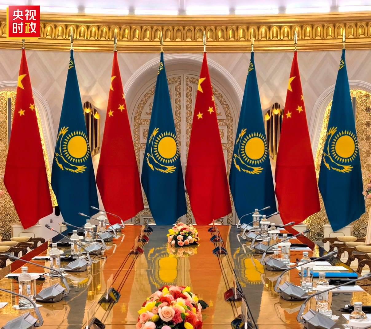 當?shù)貢r間7月3日上午,國家主席習近平在阿斯塔納總統(tǒng)府同托卡耶夫總統(tǒng)舉行小范圍會談。