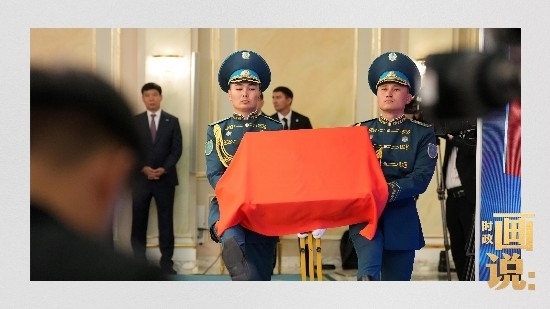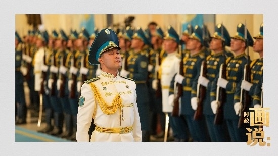 當(dāng)?shù)貢r間3日,國家主席習(xí)近平在阿斯塔納出席哈薩克斯坦總統(tǒng)托卡耶夫在總統(tǒng)府舉行的歡迎儀式。習(xí)近平主席乘車抵達時,托卡耶夫總統(tǒng)熱情迎接,以最高禮儀歡迎習(xí)近平主席對哈薩克斯坦進行國事訪問。