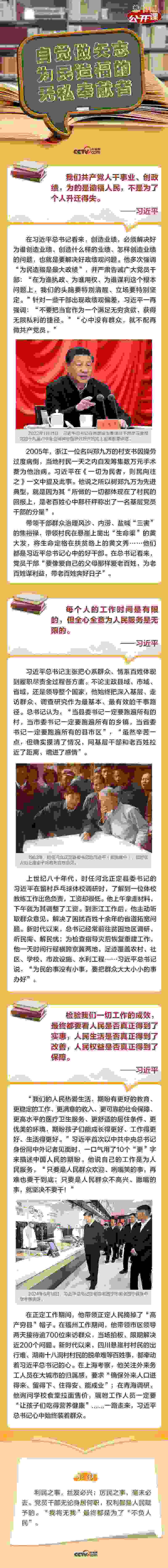 2024年3月,習(xí)近平總書記在2024年春季學(xué)期中央黨校(國(guó)家行政學(xué)院)中青年干部培訓(xùn)班開(kāi)班之際作出重要指示強(qiáng)調(diào),要自覺(jué)做矢志為民造福的無(wú)私奉獻(xiàn)者,始終把人民放在心中最高位置。