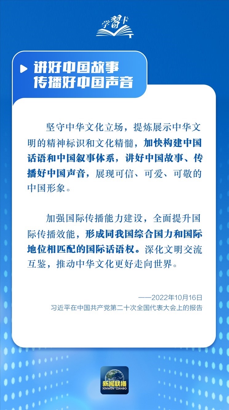 習(xí)近平總書記高度重視國際傳播能力建設(shè),指出當(dāng)前外宣工作處于歷史最好時期,同時也面臨最大壓力,強(qiáng)調(diào)要全面加強(qiáng)和改進(jìn)國際傳播工作,深化文明交流互鑒,形成同我國綜合國力和國際地位相匹配的國際話語權(quán),增強(qiáng)中華文明傳播力影響力。一起學(xué)習(xí)↓