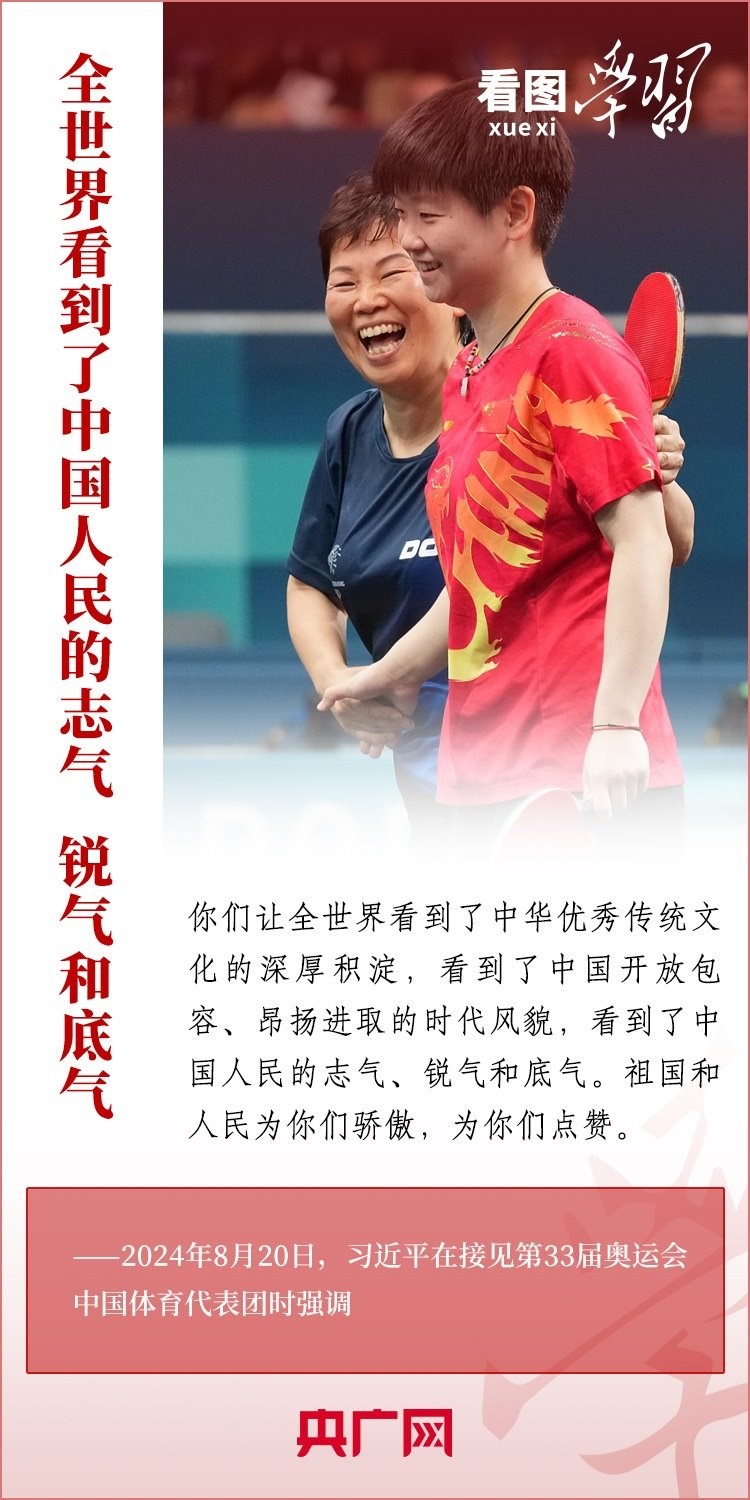 “祖國和人民為你們驕傲,為你們點贊?!?月20日,習近平總書記在人民大會堂接見第33屆奧運會中國體育代表團并發(fā)表重要講話??倳浉叨瓤隙ㄖ袊w育代表團取得的優(yōu)異成績,贊揚他們充分彰顯了新時代中國力量、生動詮釋了新時代中國精神、充分展現(xiàn)了新時代中國形象,勉勵大家戒驕戒躁、再接再厲,為建設體育強國再立新功。一起來學習!