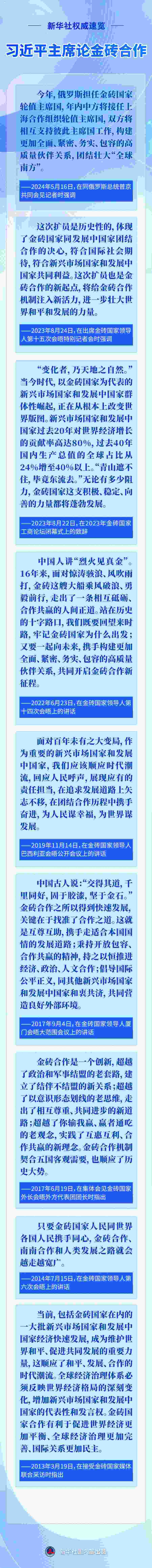 應(yīng)俄羅斯聯(lián)邦總統(tǒng)普京邀請,國家主席習(xí)近平將于10月22日至24日赴俄羅斯喀山出席金磚國家領(lǐng)導(dǎo)人第十六次會晤。今年是“大金磚合作”開局之年,此次會晤是金磚擴(kuò)員后首次舉行,國際社會廣泛關(guān)注。近年來,習(xí)近平主席圍繞金磚合作作出一系列重要論述,一起重溫——