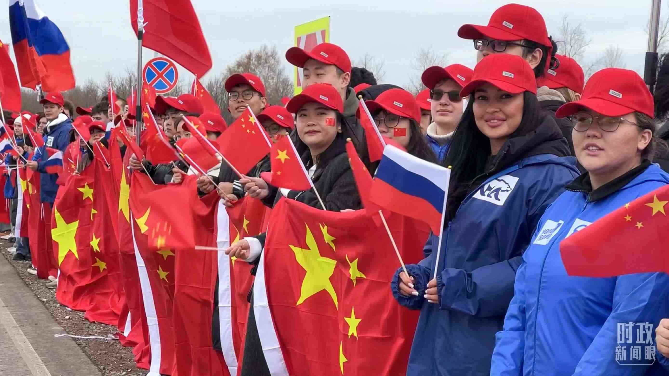 △ 俄羅斯喀山各界人士揮舞中俄兩國(guó)國(guó)旗,歡迎習(xí)主席到訪。(總臺(tái)央視記者楊新禹拍攝)