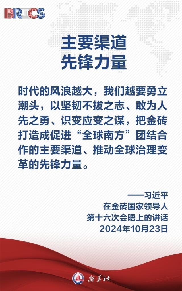 當(dāng)?shù)貢r間10月23日,國家主席習(xí)近平在俄羅斯喀山出席金磚國家領(lǐng)導(dǎo)人第十六次會晤并發(fā)表題為《登高望遠(yuǎn),穿云破霧 推動“大金磚合作”高質(zhì)量發(fā)展》的重要講話,為推動“大金磚合作”行穩(wěn)致遠(yuǎn)指明五個方向——
