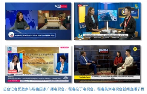 中央廣播電視總臺記者受邀參與秘魯國家廣播電視臺、秘魯拉丁電視臺和當地收視率最高的秘魯美洲電視臺新聞直播節(jié)目,介紹《平“語”近人——習近平喜歡的典故》第三季(西班牙語版)內容,帶領當地受眾感悟習近平主席用典中蘊含的中國智慧。