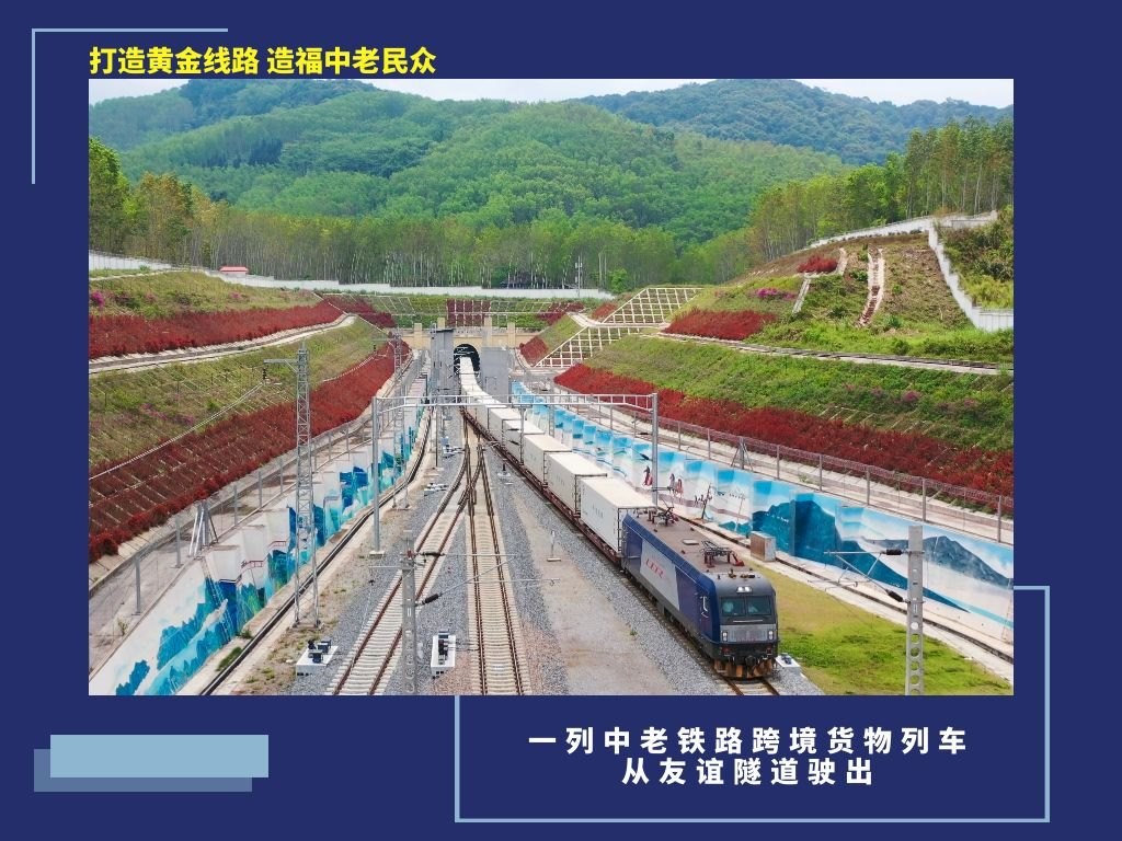 2021年12月3日,中老鐵路全線開通運營。習近平總書記通過視頻連線出席中老鐵路通車儀式時指出,中老鐵路是兩國互利合作的旗艦項目。鐵路一通,昆明到萬象從此山不再高、路不再長。雙方要再接再厲、善作善成,把鐵路維護好、運營好,把沿線開發(fā)好、建設(shè)好,打造黃金線路,造福兩國民眾。