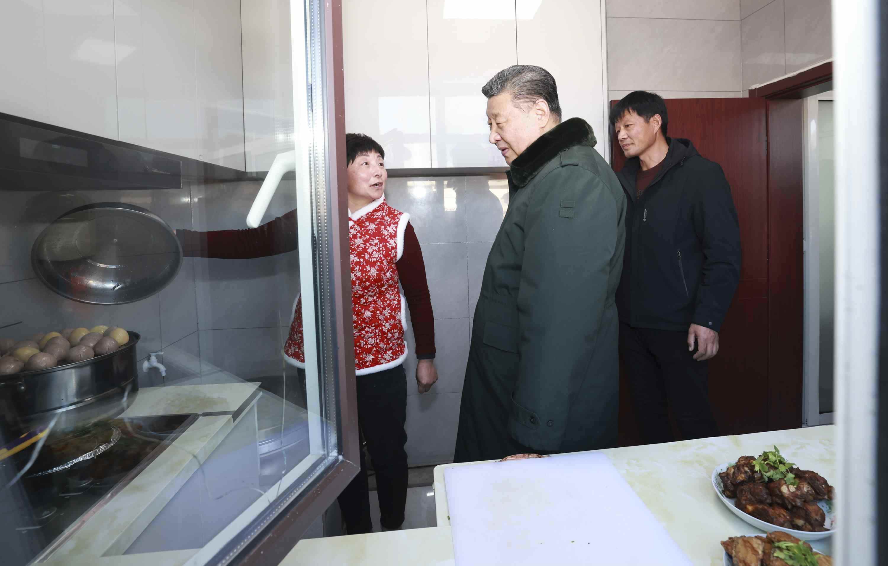 22日下午,習(xí)近平總書記冒著嚴(yán)寒來(lái)到遼寧省葫蘆島市綏中縣明水滿族鄉(xiāng)祝家溝村看望慰問(wèn)受災(zāi)群眾,實(shí)地察看去年洪澇災(zāi)害后當(dāng)?shù)鼗謴?fù)重建情況,走進(jìn)入冬前搬入新居的村民家中,了解重建房屋質(zhì)量、日常生活保障等情況。(杜尚澤)