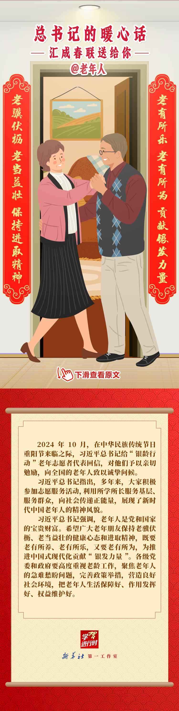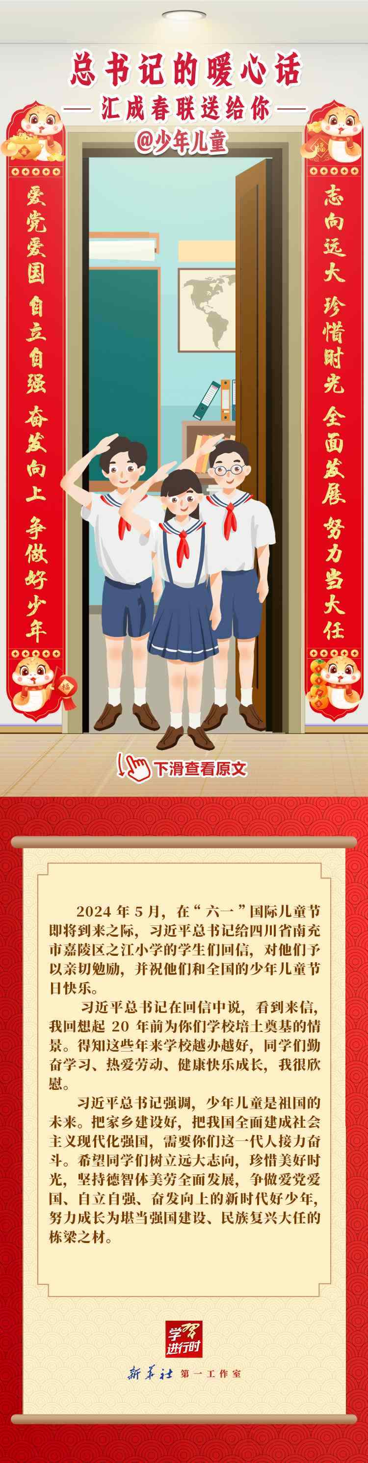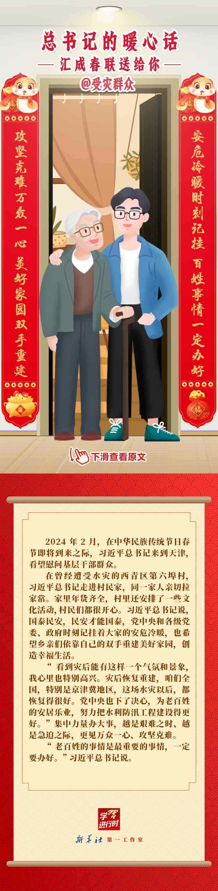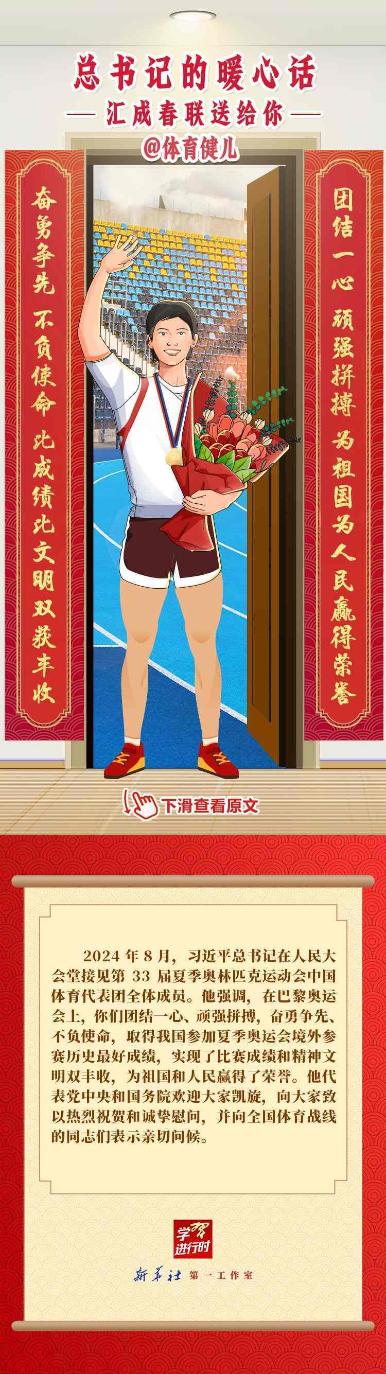 【學習進行時】過春節(jié),貼春聯,寄托人們對新年的美好愿望。過去一年,習近平總書記在不同場合點贊各行各業(yè)奮斗者,說了許多暖心話。新春之際,我們匯編成聯,向新征程上的每一位“主角”致敬,送上新春的祝福。
