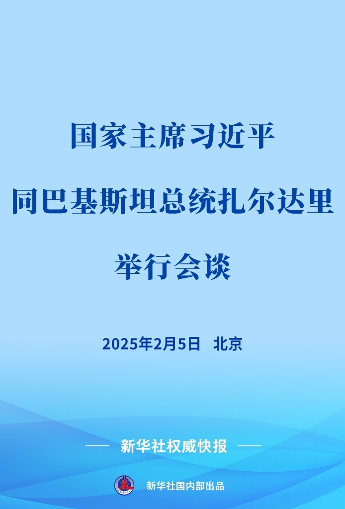 2月5日下午,國家主席習(xí)近平在北京人民大會(huì)堂同來華進(jìn)行國事訪問的巴基斯坦總統(tǒng)扎爾達(dá)里舉行會(huì)談。