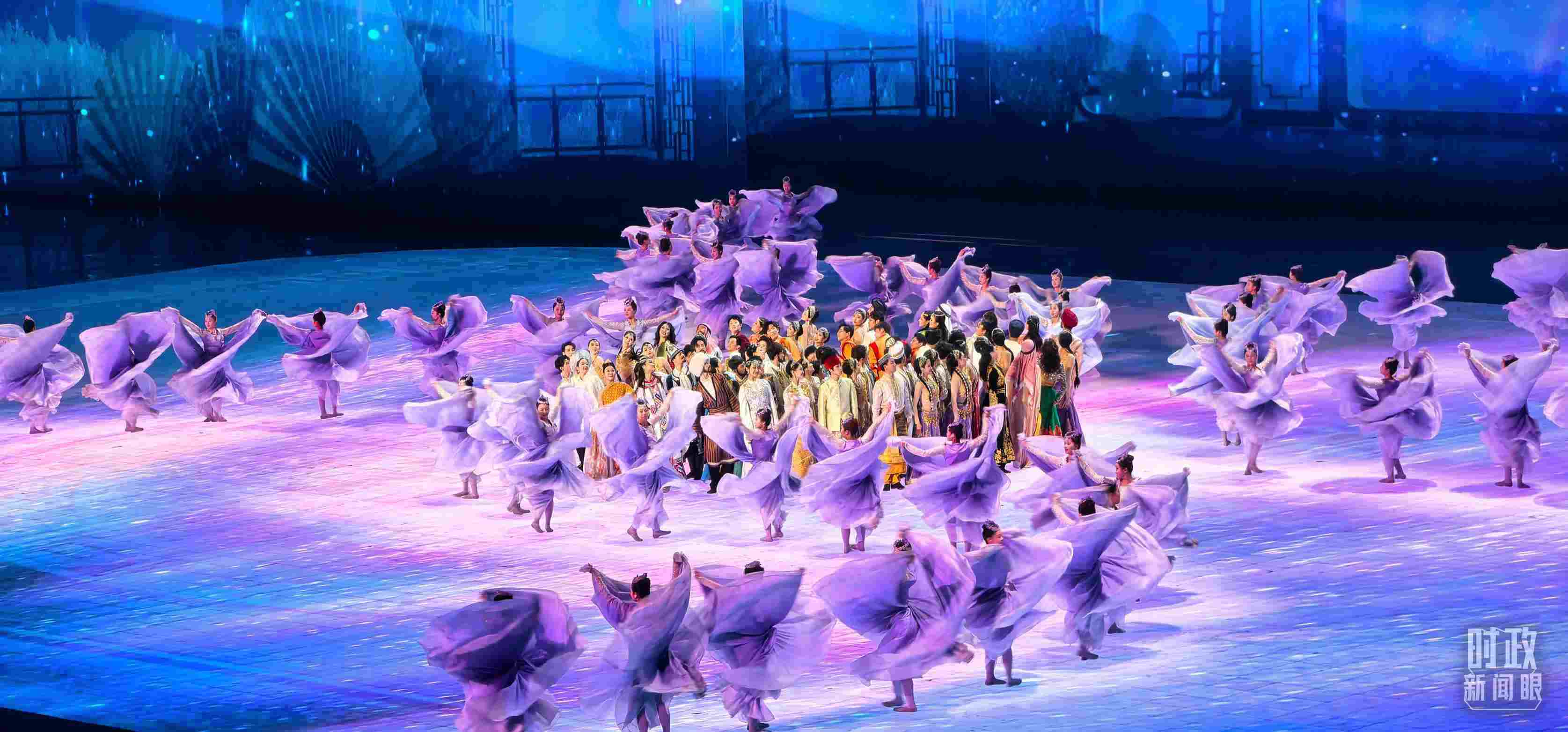 文藝表演分為上篇《熾熱冰雪》、中篇《燃情時速》、下篇《山高水長》,通過《長歌頌冰河》《榮光耀未來》《馳騁天地間》《璀璨嘉年華》《攜手情久長》《萬里共和鳴》等節(jié)目,展現(xiàn)化“極寒”為“極美”“極燃”“極暖”的意蘊(yùn)。
