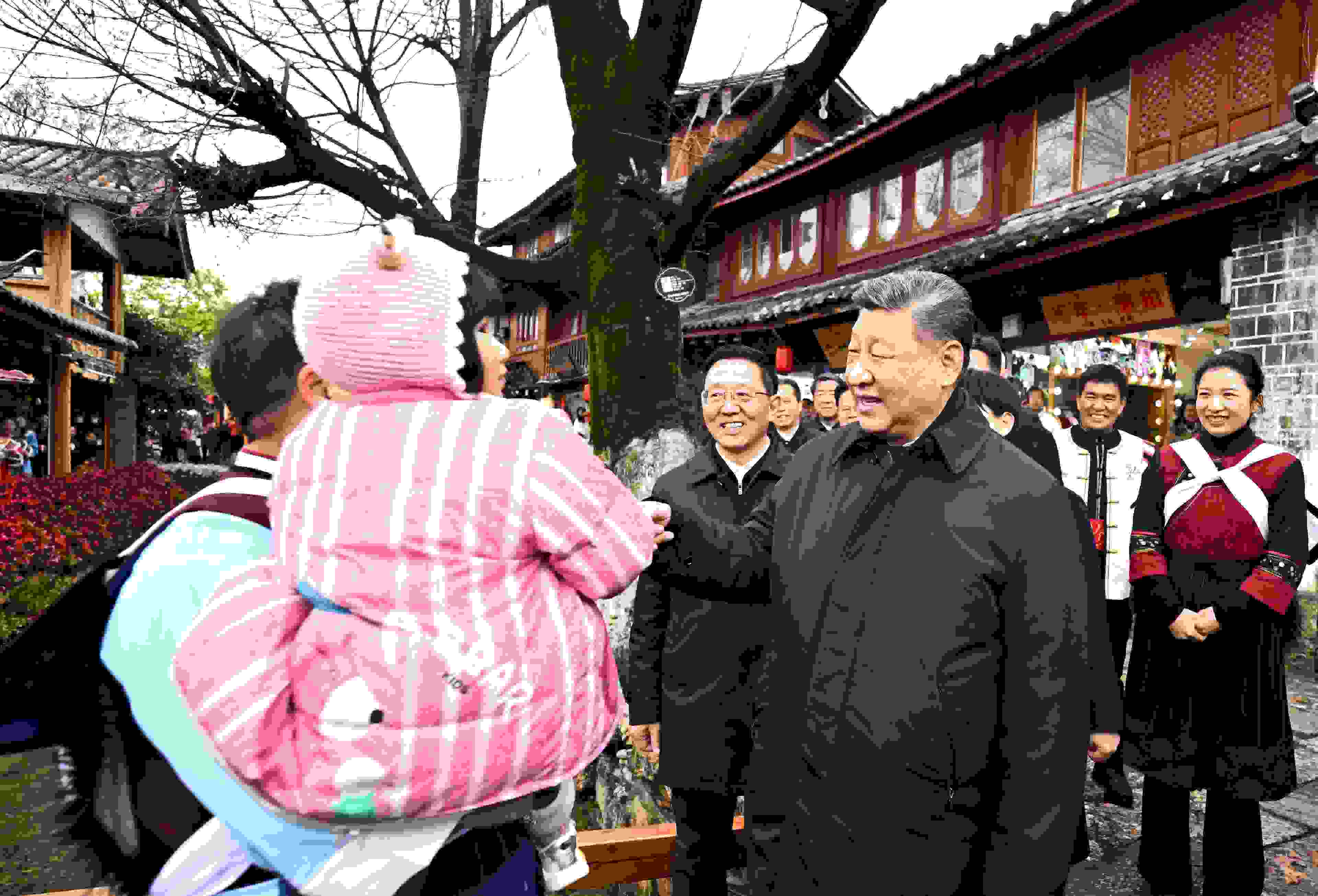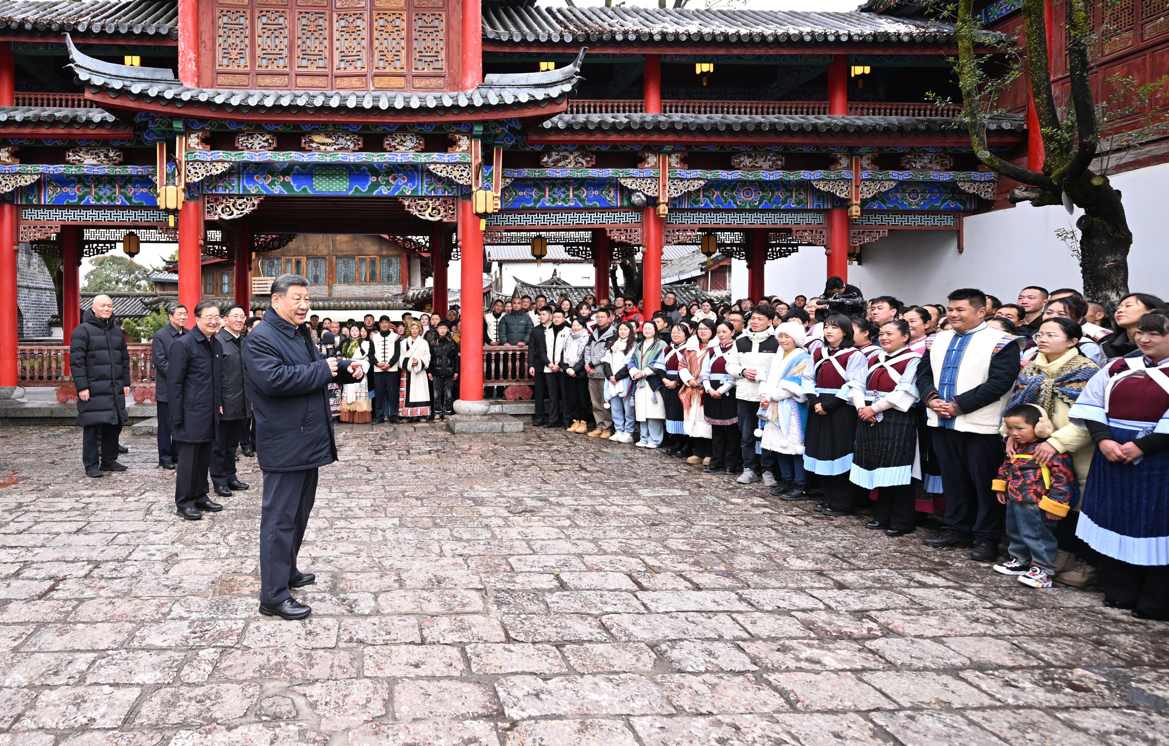 習(xí)近平總書記19日下午來到云南麗江古城,沿著石板路邊走邊看。當(dāng)?shù)鼐用窈脱赝居慰褪譄崆榈叵蚩倳泦柡茫?xí)近平不時停下腳步同大家親切交流。習(xí)近平說,這里的文化、風(fēng)光、民俗都非常吸引人,文旅融合促進(jìn)了經(jīng)濟(jì)發(fā)展。文旅產(chǎn)業(yè)要走一條持續(xù)、健康的發(fā)展之路。希望你們的生活幸福安康,就像納西族的大姓“和”姓一樣,和和美美。