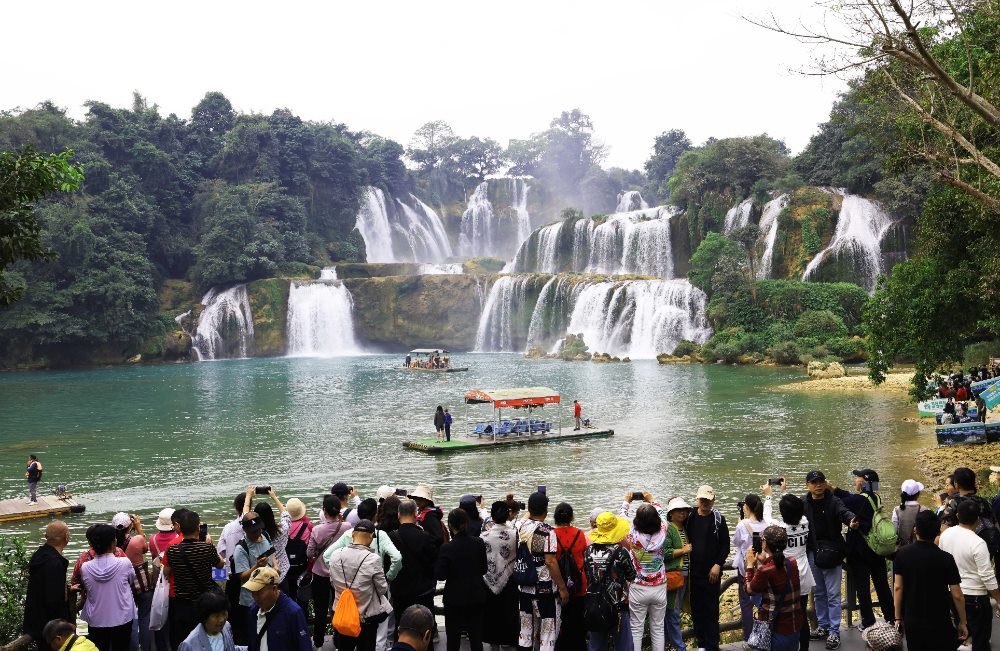 2024年12月5日,游客在中越德天(板約)瀑布跨境旅游合作區(qū)中國一側(cè)游覽。新華社記者 金皓原 攝
