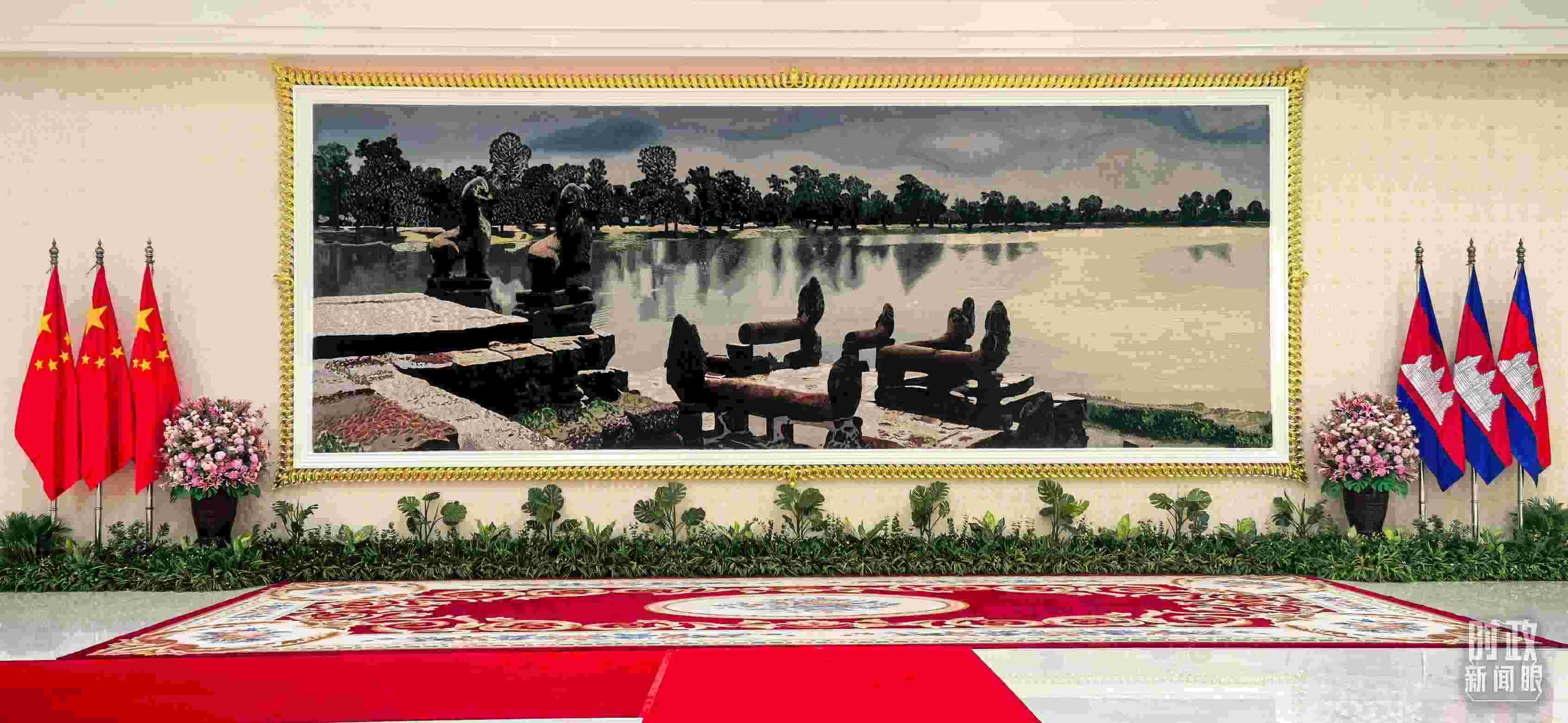 △習(xí)主席會見洪森前的合影現(xiàn)場。(總臺央視記者范凱拍攝)