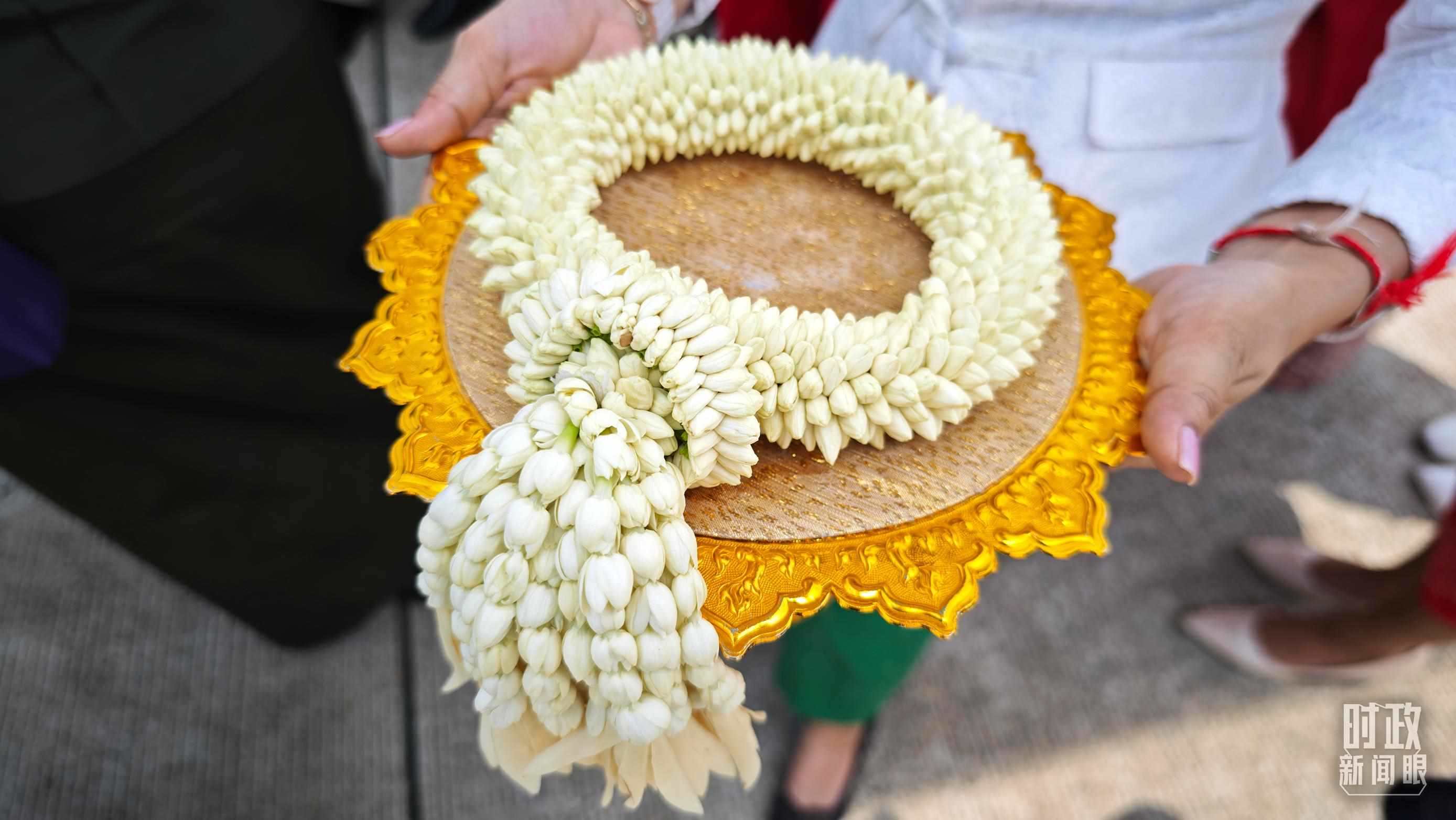△柬埔寨王室珍娜公主向習(xí)主席獻上的茉莉花手環(huán)。(總臺央廣記者潘毅拍攝)