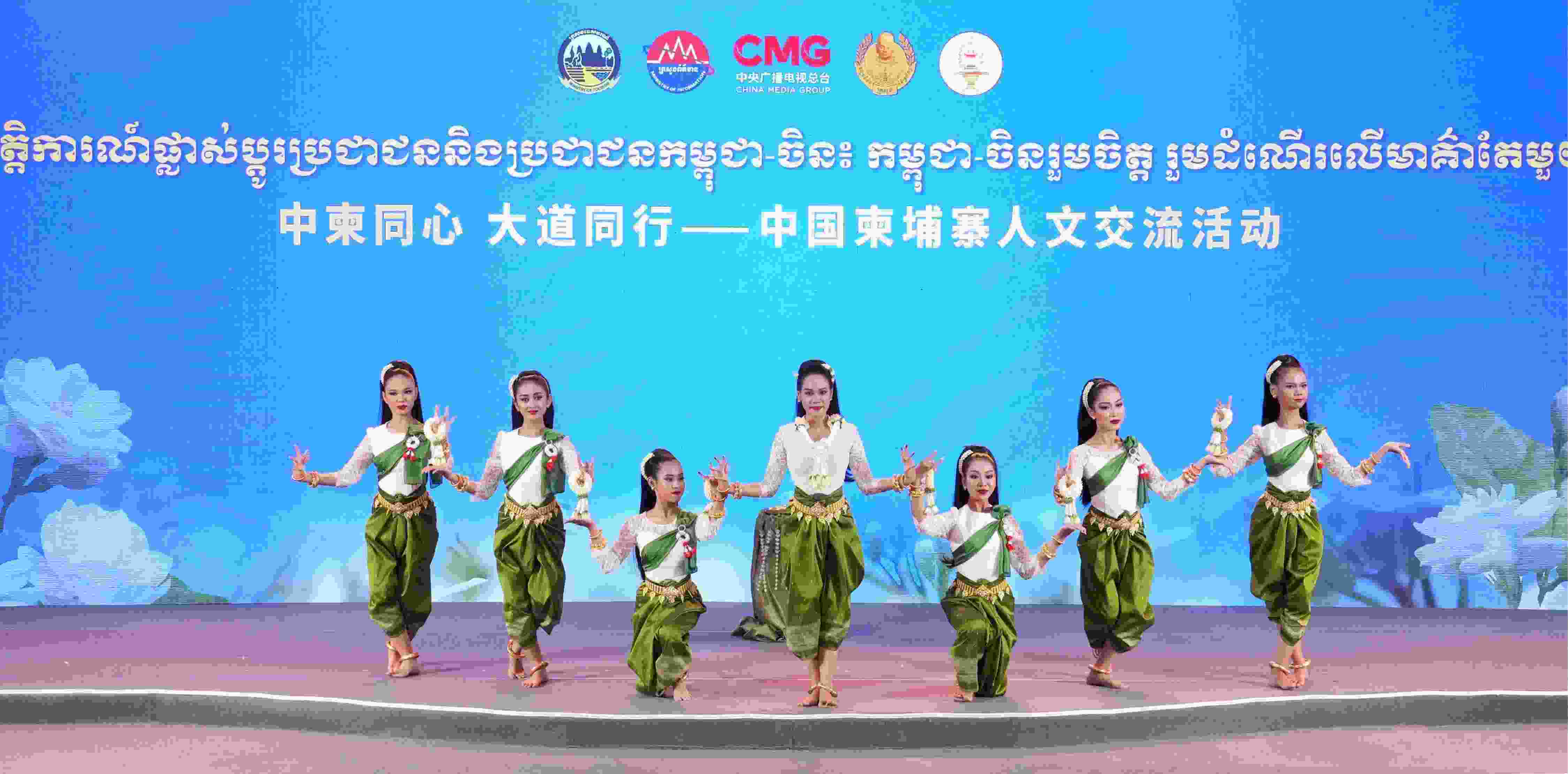 △2025年4月17日,“中柬同心 大道同行——中國(guó)柬埔寨人文交流活動(dòng)”現(xiàn)場(chǎng),來自柬埔寨帕花黛維公主舞蹈學(xué)校的師生代表在中國(guó)民歌《茉莉花》的旋律中表演柬埔寨傳統(tǒng)舞蹈。