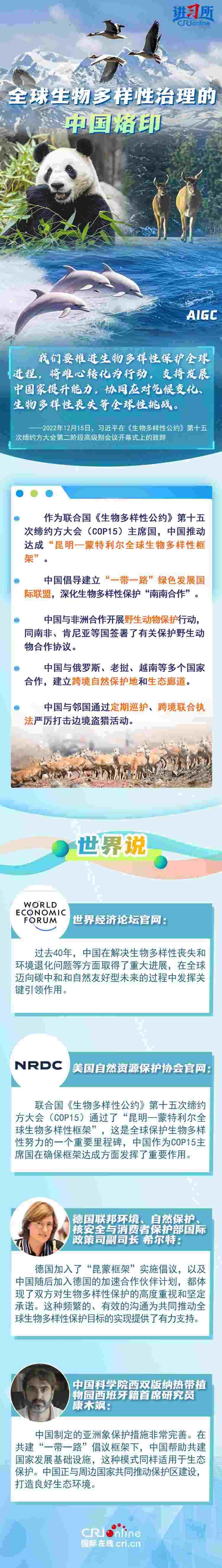 “心往一處想、勁往一處使,共建地球生命共同體。”作為最早簽署、批準(zhǔn)《生物多樣性公約》的締約方之一,生物多樣性保護(hù)已經(jīng)上升為中國的國家發(fā)展戰(zhàn)略。國際人士表示,中國的一系列舉措體現(xiàn)出對生態(tài)環(huán)境保護(hù)的堅(jiān)定決心,同時(shí),中國依托共建“一帶一路”倡議等國際合作機(jī)制,為推動全球生物多樣性保護(hù)提供了有力支持,在邁向自然友好型未來的過程中發(fā)揮關(guān)鍵的引領(lǐng)作用。