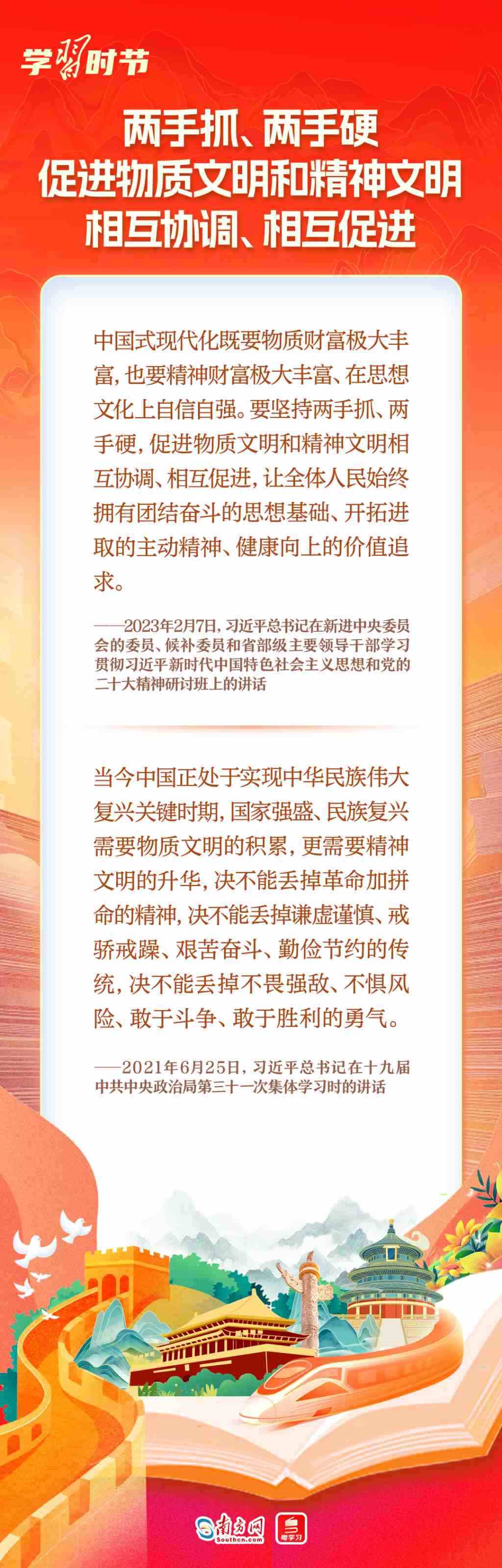 黨的十八大以來,黨中央持續(xù)推進社會主義精神文明建設,鞏固壯大社會主流價值,全民族精神面貌更加奮發(fā)昂揚,人民文明素養(yǎng)和社會文明程度顯著提升。習近平總書記高度重視社會主義精神文明建設,近年來在不同場合就精神文明建設發(fā)表了一系列重要論述,為改進創(chuàng)新精神文明建設工作、豐富人民群眾精神文化生活指明了方向、提供了遵循。我們整理了相關論述,與您繼續(xù)深入學習領會。