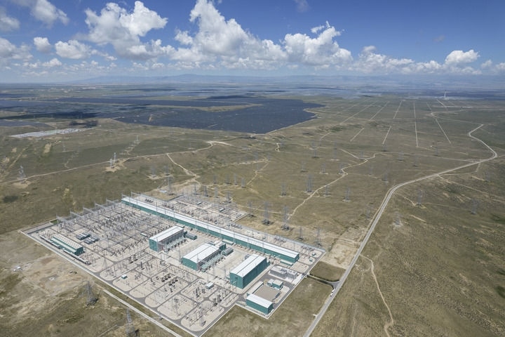 這是2025年7月25日在青海省海南藏族自治州共和縣拍攝的±800千伏特高壓青南換流站(無(wú)人機(jī)照片)。新華社記者 孫瑞博 攝