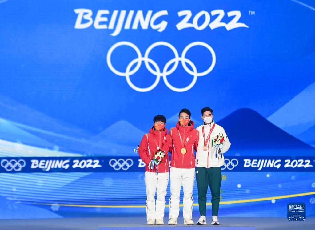 當(dāng)日,北京2022年冬奧會短道速滑男子1000米獎牌頒發(fā)儀式在北京賽區(qū)頒獎廣場舉行。