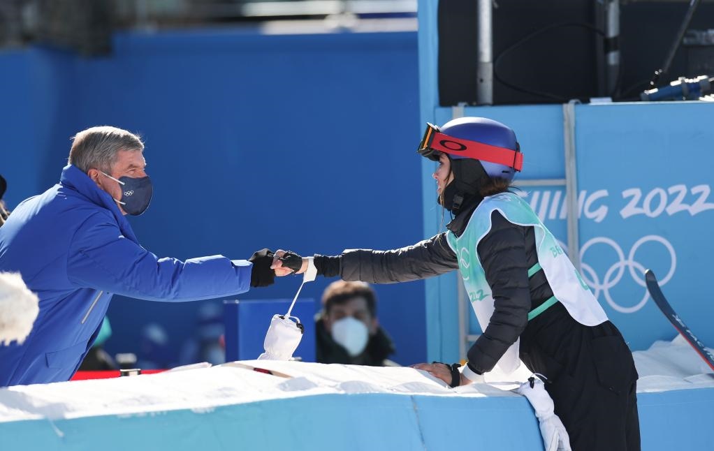 在自由式滑雪女子大跳臺項目決賽中,國際奧委會主席巴赫也到場觀賽。谷愛凌奪冠后,巴赫親自送上祝賀。“谷愛凌是令人贊嘆的,其他兩位獲得獎牌的運(yùn)動員也是。這是一場驚險刺激、讓人難以呼吸的比賽。”