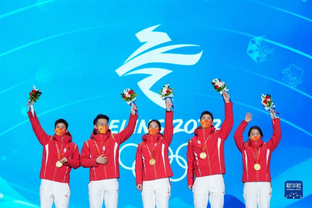 2月6日,北京2022年冬奧會(huì)短道速滑混合團(tuán)體接力獎(jiǎng)牌頒發(fā)儀式在北京賽區(qū)頒獎(jiǎng)廣場(chǎng)舉行。