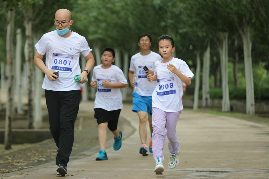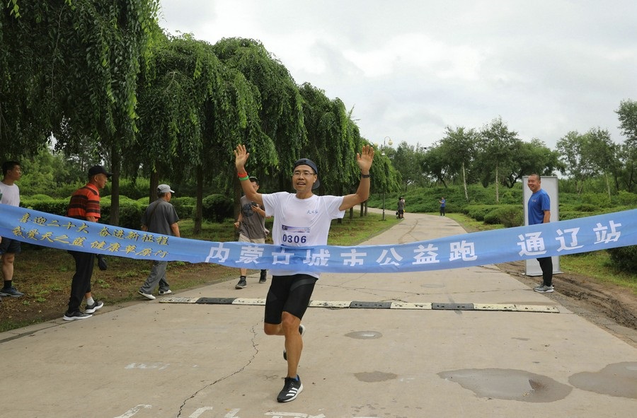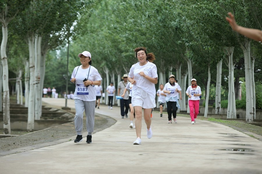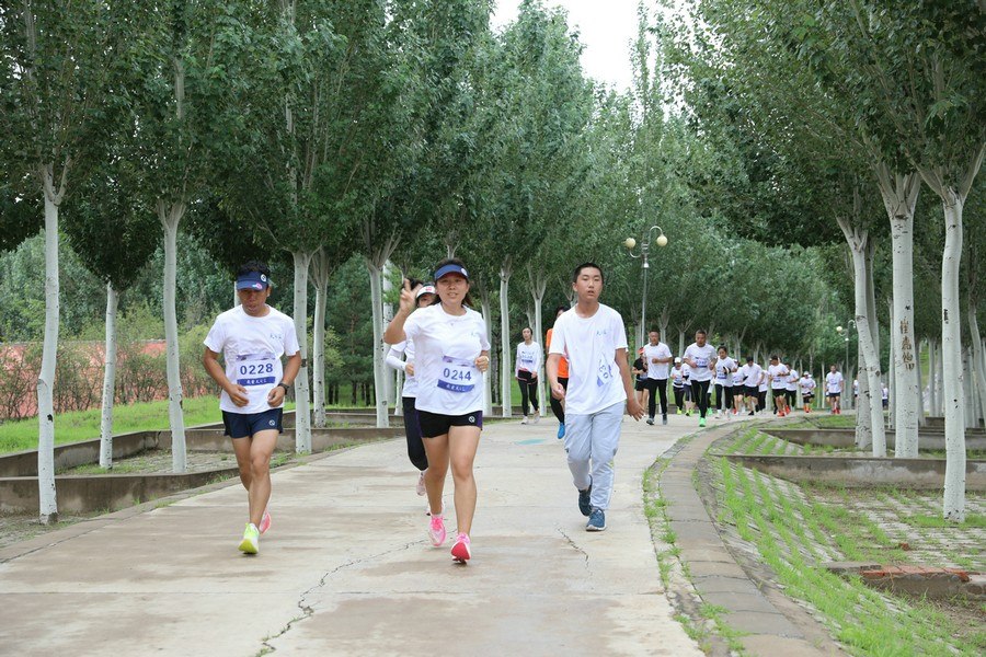 北疆新聞網(wǎng)、北疆新聞APP、北疆云消息(記者 張楊)7月24日清晨,經(jīng)過(guò)一夜的降雨,內(nèi)蒙古自治區(qū)通遼市的“城中園林”、總面積15000畝的森林公園涼爽宜人,空氣分外清新滋潤(rùn),一面面蔚藍(lán)的旗幟在蔥郁的林木間飄揚(yáng),節(jié)奏歡快的動(dòng)感音樂(lè)中,來(lái)自通遼市和科爾沁區(qū)各大跑團(tuán)的跑者們,在健身教練的帶領(lǐng)下,做著跑前的熱身運(yùn)動(dòng)。8時(shí)整,由通遼市科爾沁區(qū)教育體育局、洋河酒廠股份有限公司聯(lián)合主辦,以“我愛(ài)天之藍(lán)·青春內(nèi)蒙古·健康草原行”為主題的城市公益跑通遼站正式鳴笛開(kāi)賽,1000多名跑者在風(fēng)景秀麗的環(huán)公園林蔭賽道上開(kāi)啟了男女8公里、3公里共4個(gè)組別的城市公益跑。