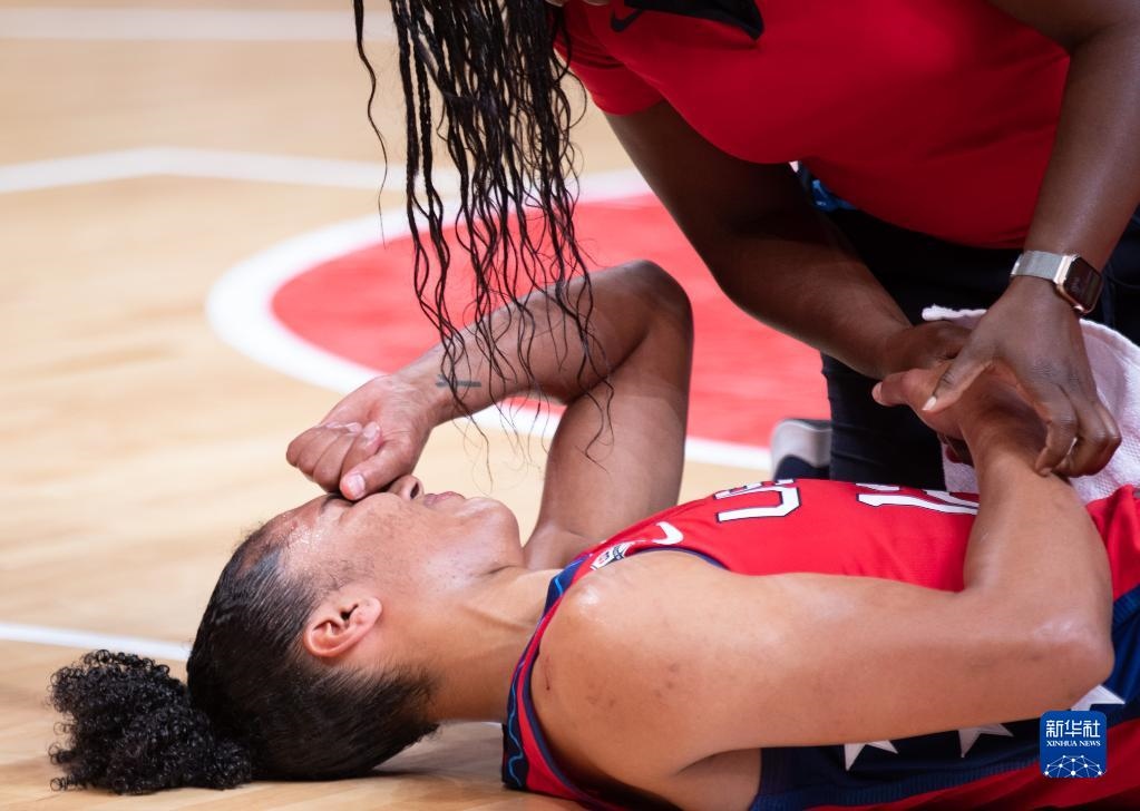 10月1日,美國隊(duì)球員托馬斯在比賽中受傷倒地。