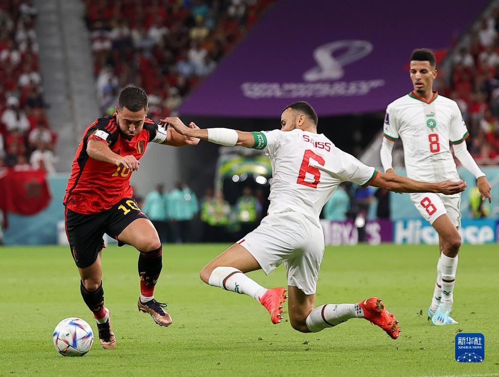 當日,在卡塔爾多哈阿圖瑪瑪球場進行的2022卡塔爾世界杯足球賽F組比賽中,比利時隊以0比2不敵摩洛哥隊。