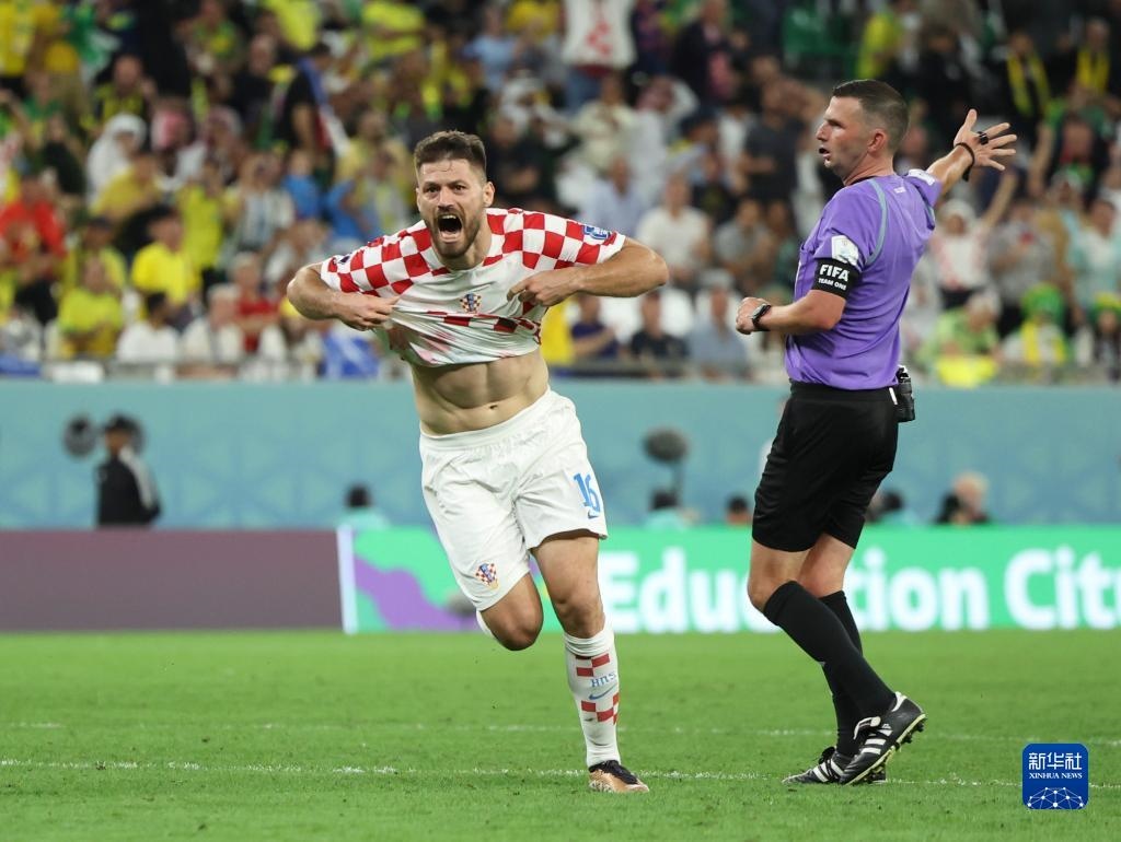 當日,在卡塔爾賴揚教育城球場進行的2022卡塔爾世界杯足球賽四分之一決賽中,克羅地亞隊與巴西隊在常規(guī)時間和加時賽戰(zhàn)成1比1平,通過點球大戰(zhàn)克羅地亞隊以總比分5比3獲勝。