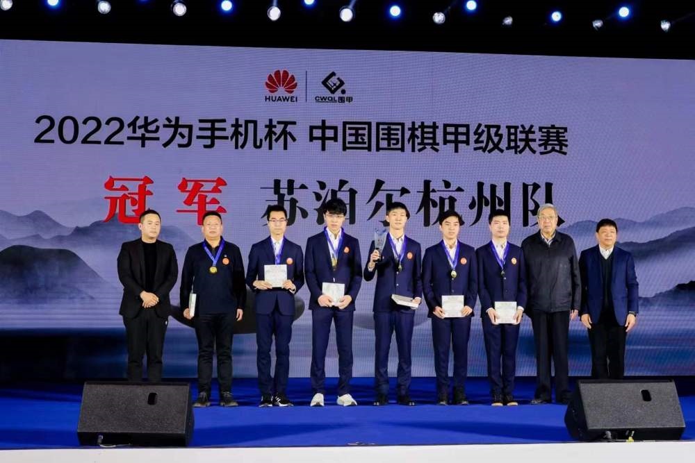 蘇泊爾杭州隊(duì)在2022華為手機(jī)杯中國圍棋甲級聯(lián)賽頒獎(jiǎng)儀式上。