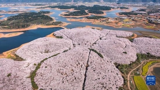 近日,貴州省貴安新區(qū)櫻花園內(nèi)的2.4萬畝櫻花競(jìng)相綻放,如雪似霞,吸引游客前來賞花觀光。