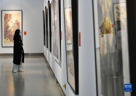 4月6日,觀眾在長安畫派藝術(shù)中心觀賞美術(shù)作品。