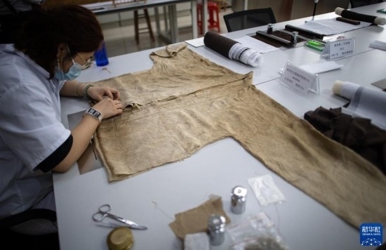 5月20日,在荊州文物保護中心,修復人員劉一丹修復一件南宋紡織品。