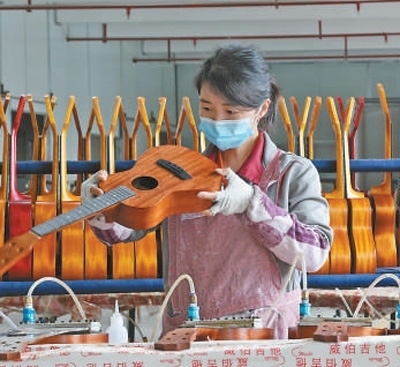 從第一家吉他企業(yè)落戶正安吉他文化產(chǎn)業(yè)園起,經(jīng)過10年的發(fā)展,園區(qū)內(nèi)目前年產(chǎn)銷吉他超過600萬把,約占全國(guó)吉他產(chǎn)量的1/5?!叭绻麊胃慵圃?,我們的產(chǎn)業(yè)會(huì)局限在工業(yè)領(lǐng)域。”正安縣委宣傳部副部長(zhǎng)楊安輝說,從2016年起,正安就開始著手吉他文化的培育、推廣和普及,延長(zhǎng)吉他產(chǎn)業(yè)鏈。
