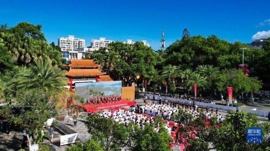 這是7月8日拍攝的五指山“上山爽一夏 故園·畢業(yè)季”暨州府故園文化節(jié)啟動儀式現場。