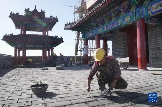 11月1日,工人在河北省張家口市萬(wàn)全右衛(wèi)城長(zhǎng)城國(guó)家文化公園文旅融合區(qū)項(xiàng)目建設(shè)工地施工。