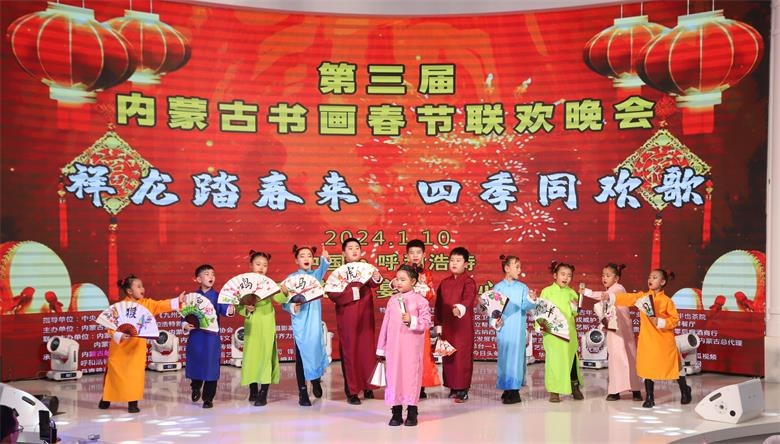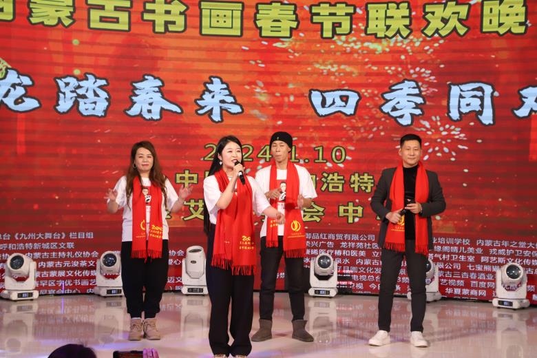 北疆新聞呼和浩特消息 1月10日,以“祥龍?zhí)ご簛? 四季同歡歌”為主題的第三屆內(nèi)蒙古書畫春節(jié)聯(lián)歡晚會在呼和浩特圓滿舉行。本次晚會匯聚了近500位內(nèi)蒙古老中青書畫家、演藝明星、政企嘉賓以及熱愛中國傳統(tǒng)文化的社會各界愛心人士代表,用書畫、歌舞、相聲等豐富多彩的形式,總結(jié)2023,展望2024。