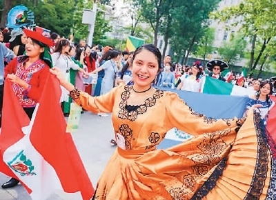 在游園會現(xiàn)場,體現(xiàn)不同文化背景的傳統(tǒng)民族服飾、特色明信片、精巧木雕、熱情舞蹈、面部彩繪等,都展現(xiàn)出文化交流的獨特魅力。