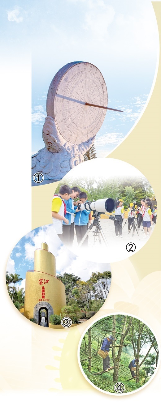 游客行走在標志園內,可以沿著腳下被玻璃罩住的“北回歸線”標志開始游覽。一路自東向西,游客能看到兩邊種植著不同的植物,古代“計時器”日晷上隨時間而移動的影子,墨江天文館中炫酷的“大塊頭”望遠鏡……“標志園在設計時就將豐富的天文、地理知識融入其中,近年來又加入裸眼3D科普電影等內容,很多科普研學活動在此舉辦?!蹦h文化和旅游局局長楊春德說。