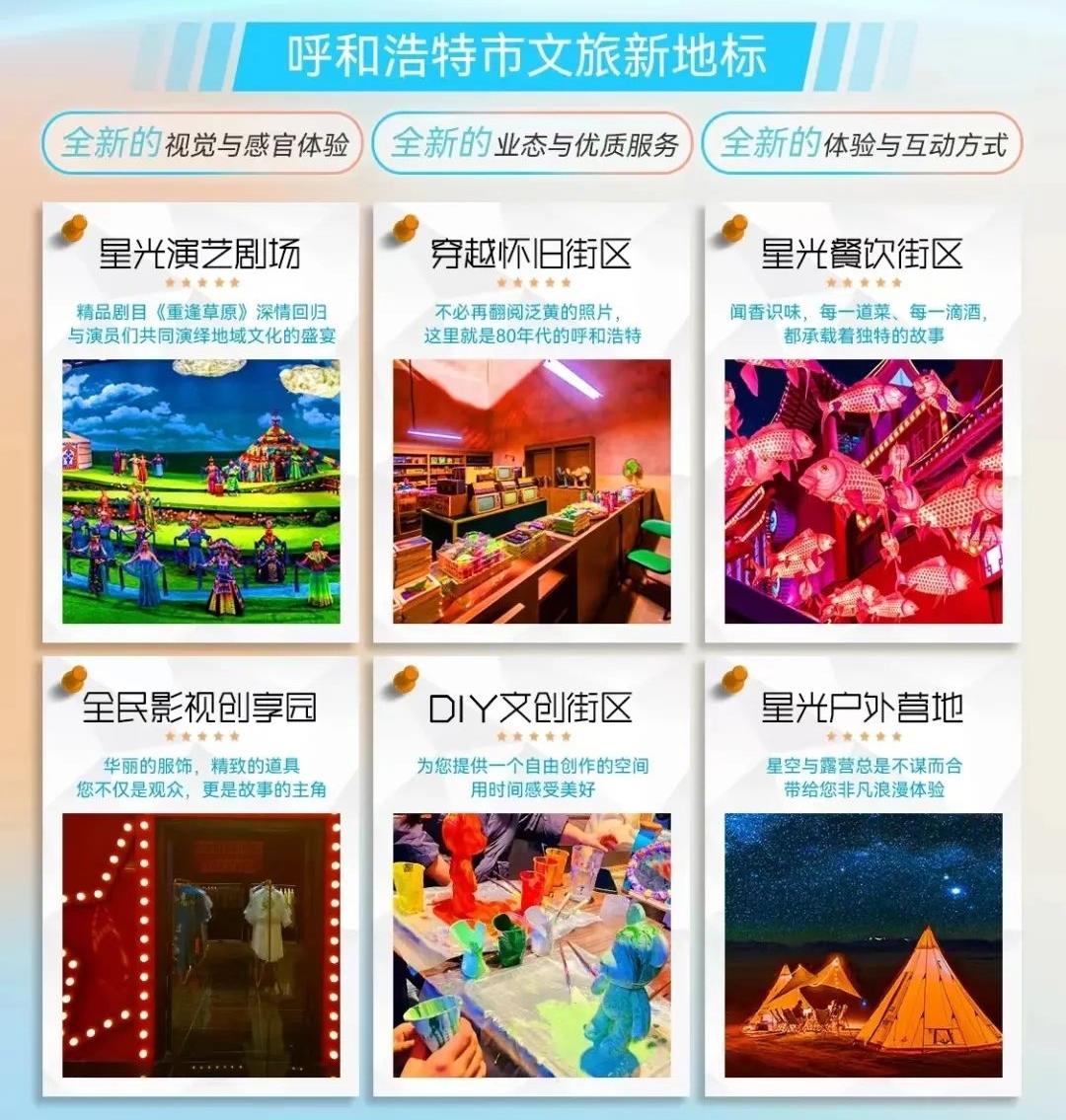 “敕勒川星光里”為免門(mén)票常態(tài)化經(jīng)營(yíng)模式。場(chǎng)館內(nèi)4大主題區(qū)均可免費(fèi)暢玩打卡,定時(shí)開(kāi)展場(chǎng)景式演藝秀,數(shù)十名NPC帶您互動(dòng)體驗(yàn),餐飲、萌寵、美妝、DIY,還有穿越80年代等等,戶外場(chǎng)地也將以其獨(dú)特的草原風(fēng)情和現(xiàn)代化的設(shè)施為游客市民們提供戶外演出和休閑露營(yíng)的空間。