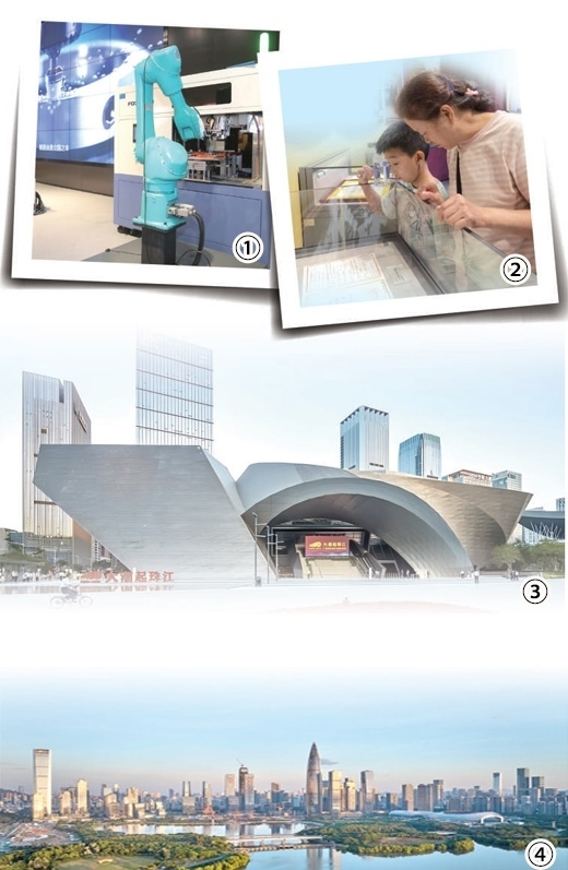 圖①:展覽中“無人工廠”演示場景,機(jī)器人在生產(chǎn)線作業(yè)。朱洪波攝 圖②:參觀者在觀看展品。本報(bào)記者 鄭海鷗攝 圖③:深圳改革開放展覽館外景。深圳改革開放展覽館供圖 圖④:深圳灣。史家民攝(影像中國)