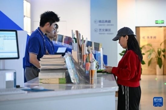 11月13日,讀者在位于??诘男氯A書(shū)店海島書(shū)香店購(gòu)買書(shū)籍。