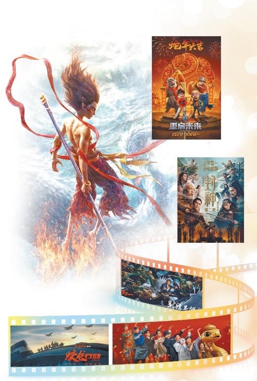 《哪吒之魔童鬧?!贰短铺?900》《熊出沒·重啟未來》《蛟龍行動》《封神第二部:戰(zhàn)火西岐》《射雕英雄傳:俠之大者》等6部影片同步上映,2025年春節(jié)檔被稱為“最強春節(jié)檔”。家國情懷、傳統(tǒng)文化、IP電影、電影工業(yè)化等成為這個春節(jié)檔的關(guān)鍵詞。